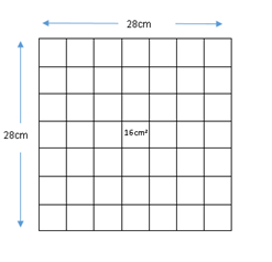 Para llevar a cabo la confección del juego, se debe disponer de los siguientes materiales: una lámina de papel bond, marcadores permanentes, lápiz, regla graduada en cm, anime, cortadora de anime, tijera de punta redonda. Luego de contar con los materiales, se procede a realizar un tablero de cartón formado por una cuadricula de 7x7 y con recuadros de 16 cm 2 cada uno, como lo indica la siguiente figura (Ver Figura 5).