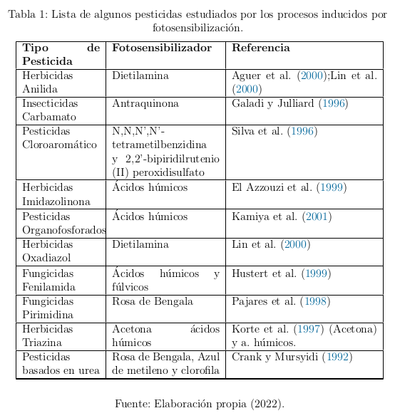 fotoquı́micos y procesos de oxidación de la fotodegradación de pesticidas. Se hace