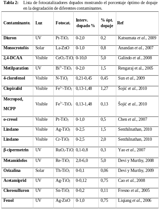 en tratamientos fotoquı́micos y procesos de oxidación de la fotodegradación de pesticidas,