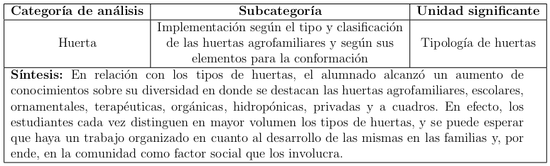estudio comprendieron conceptos, técnicas y procesos agrı́colas para la conformación de huertas,