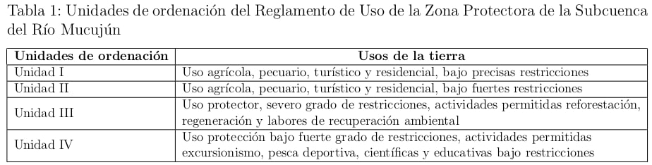 cual, establece como Figura de Zona Protectora la subcuenca Mucujún; y el reglamento de uso
