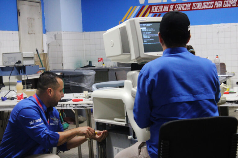 Figura 2: Tecnólogos durante trabajo de diagnóstico en equipos del Hospital Universitario de Los Andes