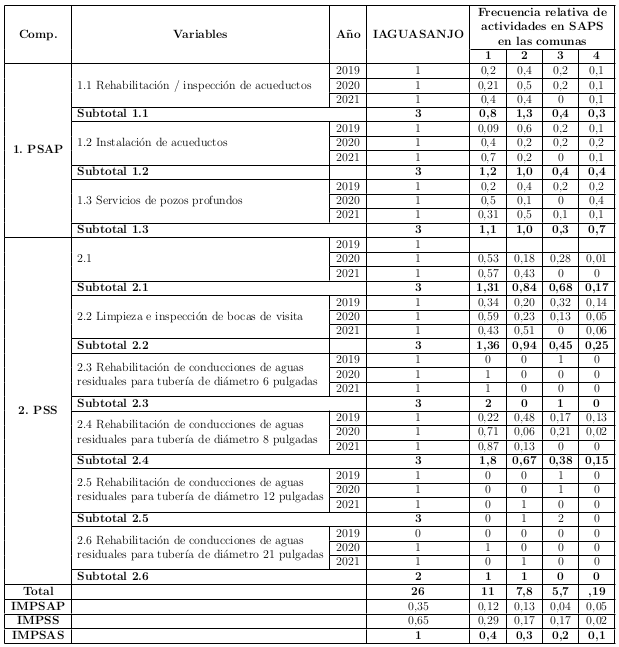 En este estudio se crearon ı́ndices para modelos de prestación de servicios de agua