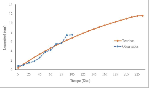 y Velasco (2012), indicando que la especie presenta una longevidad superior a los 2 años.