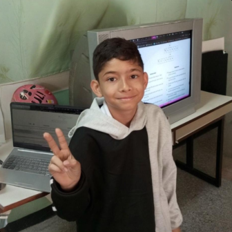 (g) Estudiante de 5to grado B respondiendo preguntas sobre el video cuento El Principito, a través de un Crucigrama