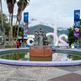 Figura 1. Plaza y Monumento a Las Heroínas Merideñas, al fondo el Sistema Teleférico Mukumbarí