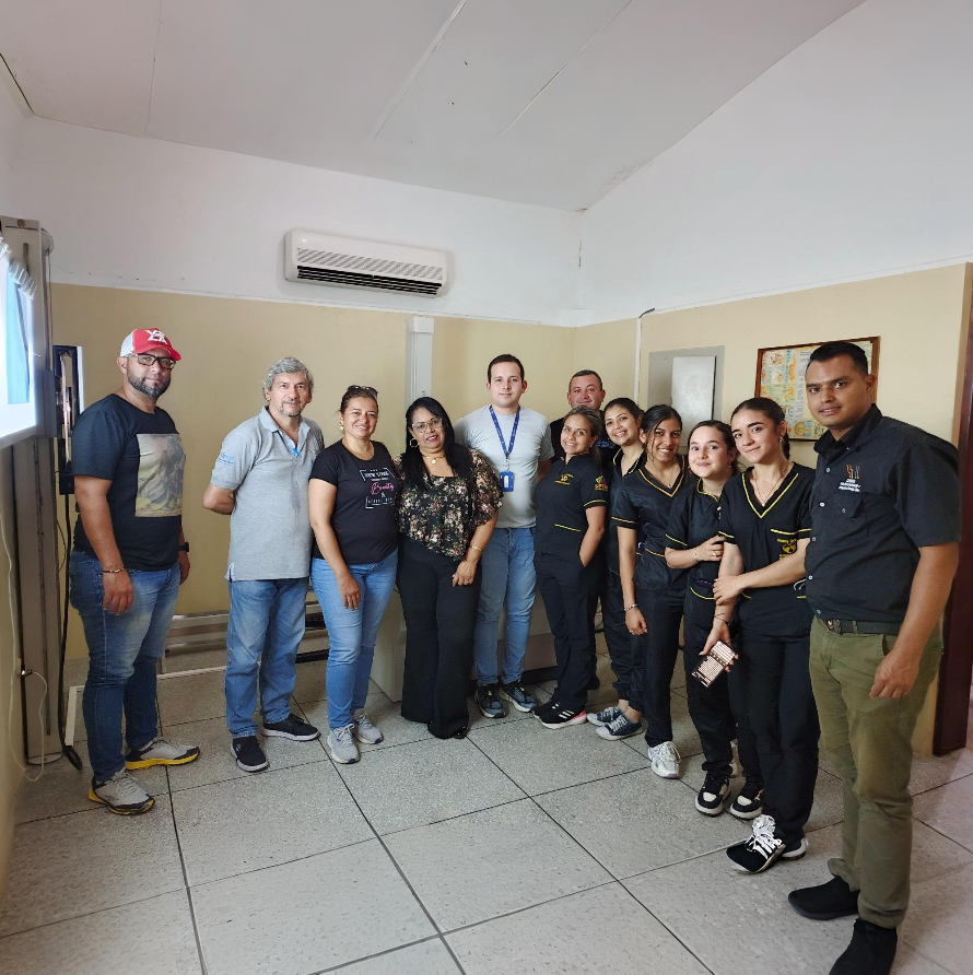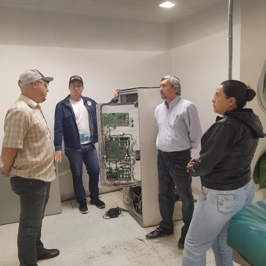 Figura 2. Interacción con equipo de Imagenología, T.S.U. Miguel Narváez, Ing. Alfredo Guardia, Licda. Ruth Villegas