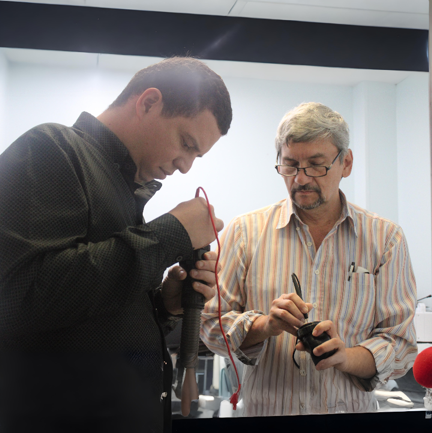 Figura 1. Interacción con equipo de Imagenología por parte del T.S.U. Miguel Narváez y el Ing. Alfredo Guardia