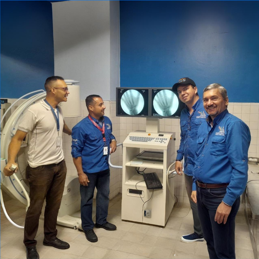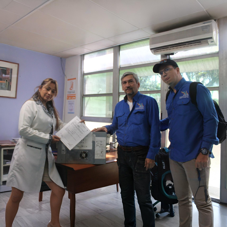 Figura 2. Interacción con equipo de Imagenología, T.S.U. Miguel Narváez, Ing. Alfredo Guardia, Licda. Ruth Villegas