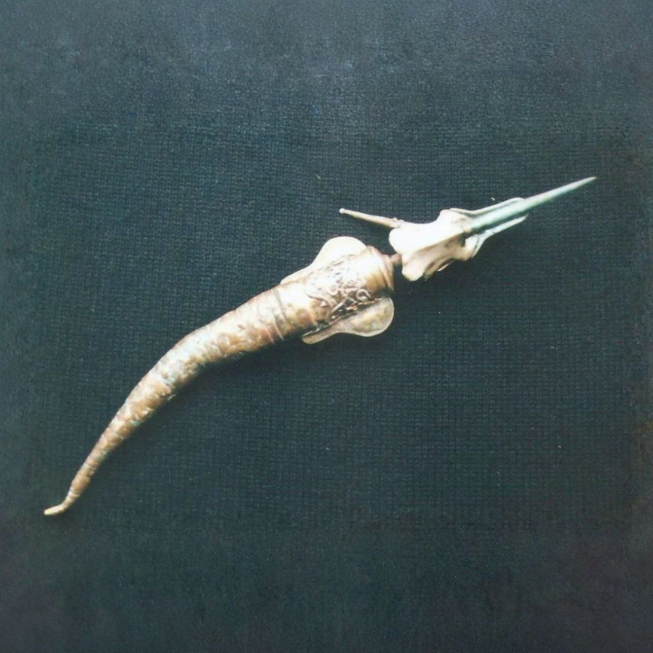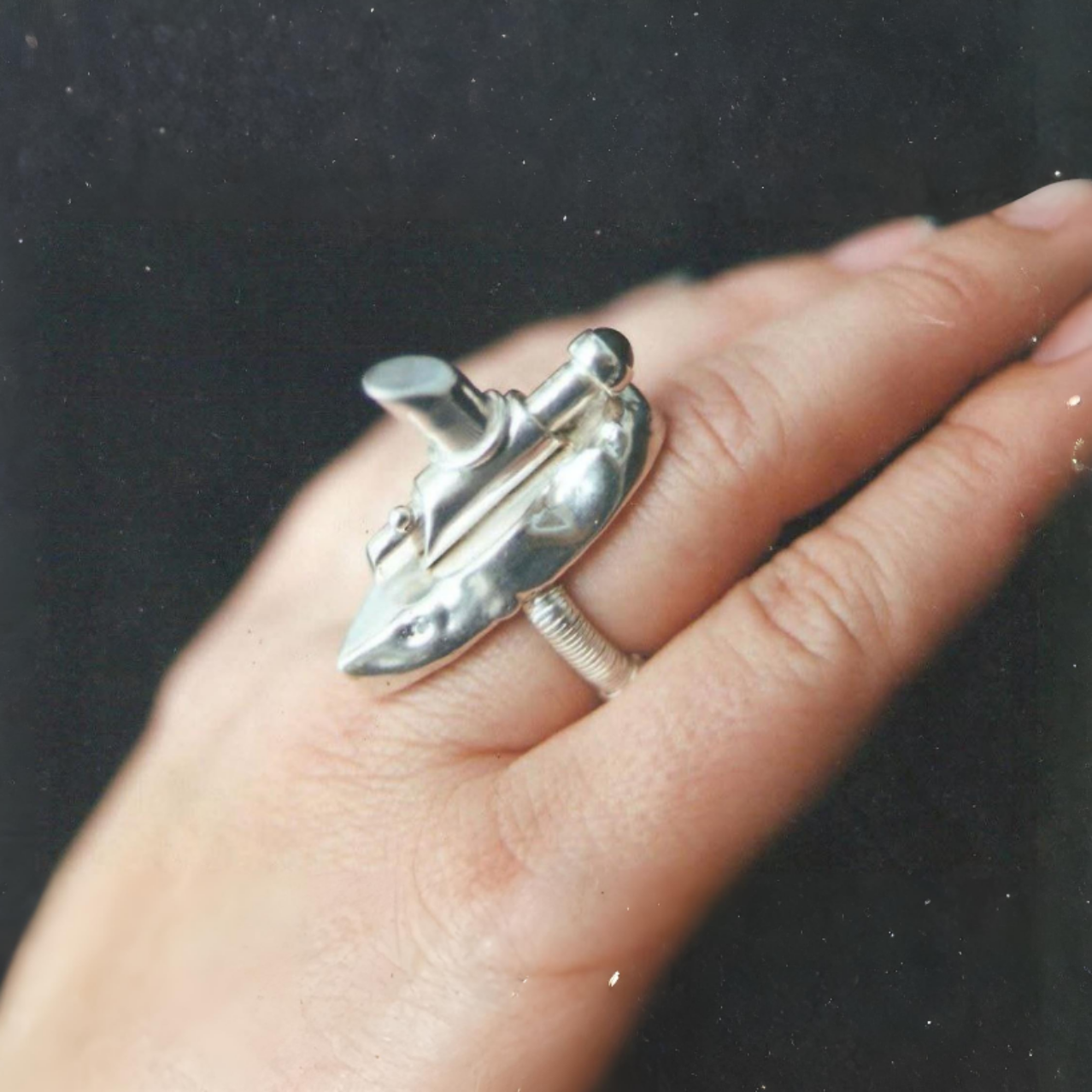 moldeado, recocido, cincelado, repujado y forjado logra elaborar prendas de plata, cobre y oro.