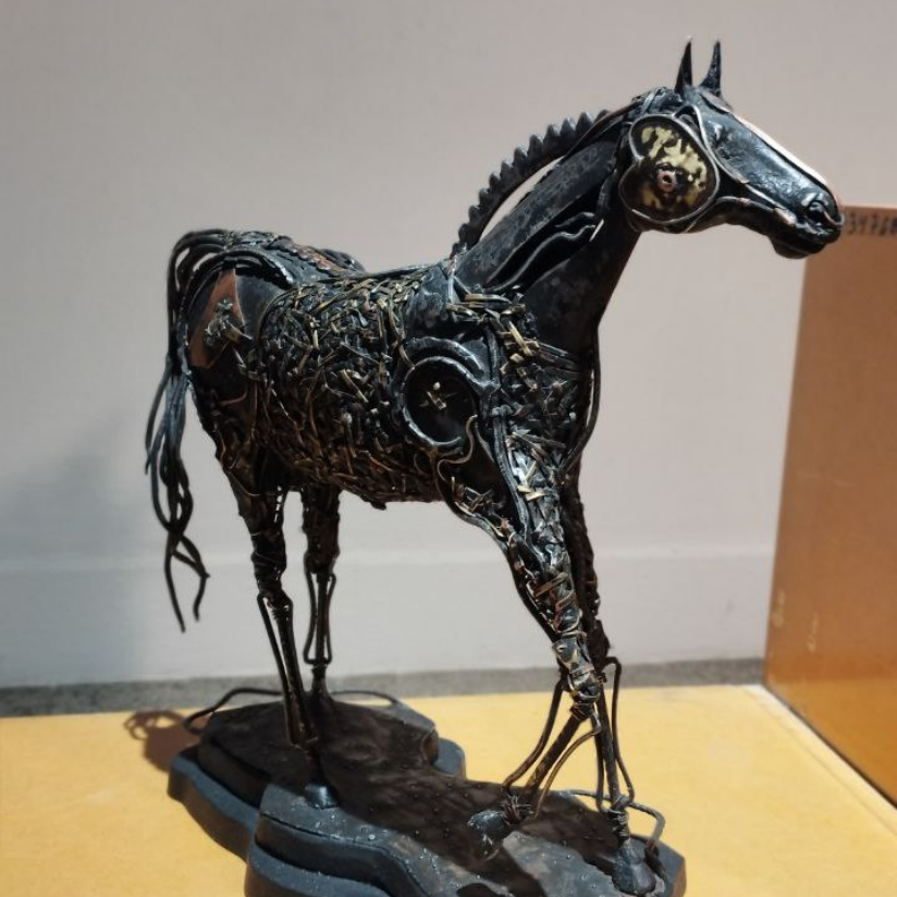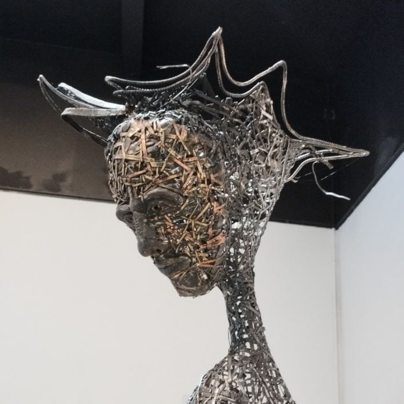 Finalmente dentro de esta serie encontramos también la representación de lo humano, a través de esculturas que muestran rostros construidos mediante la utilización del tejido entramado de cintas metálicas, con el mismo estilo desenfadado, arbitrario, caótico; en algunas piezas estas características están más marcadas; las figuras representadas son rostros humanos que se develan o surgen del tejido, apenas mostrando los rasgos mas significativos, con un acabado esquemático no realista. Aquí percibimos una obra conformada entre una mezcla de elementos abstractos y figurativos. Esta relación le da a la obra una carga subjetiva y simbólica mayor, en contraposición a las que conforman las series de orden abstracto. Para David estas esculturas representan la angustia del hombre contemporáneo, su incertidumbre, producto de la ruptura de paradigmas sociales y económicos, también al hombre atrapado o desplazado por conflictos bélicos.